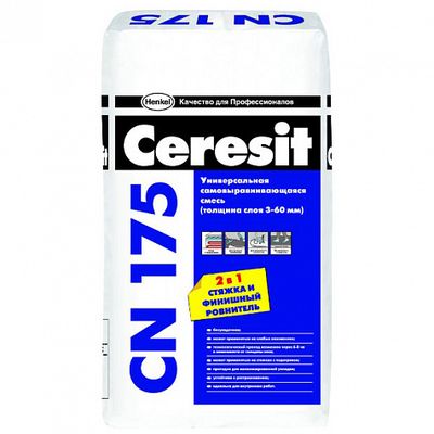 Универсальная самовыравнивающаяся смесь CN 175 Super предназначена для выравнивания пола под укладку покрытий (ПВХ, линолеума, ковролина, керамической плитки, ламината и др.), изготовления стяжек и ремонта дефектов оснований пола (трещин, выбоин и т.д.) в сухих помещениях с невысокими механическими нагрузками (жилых, бытовых, административных и т.п.). Предназначена как для ручного, так и для механизированного нанесения.