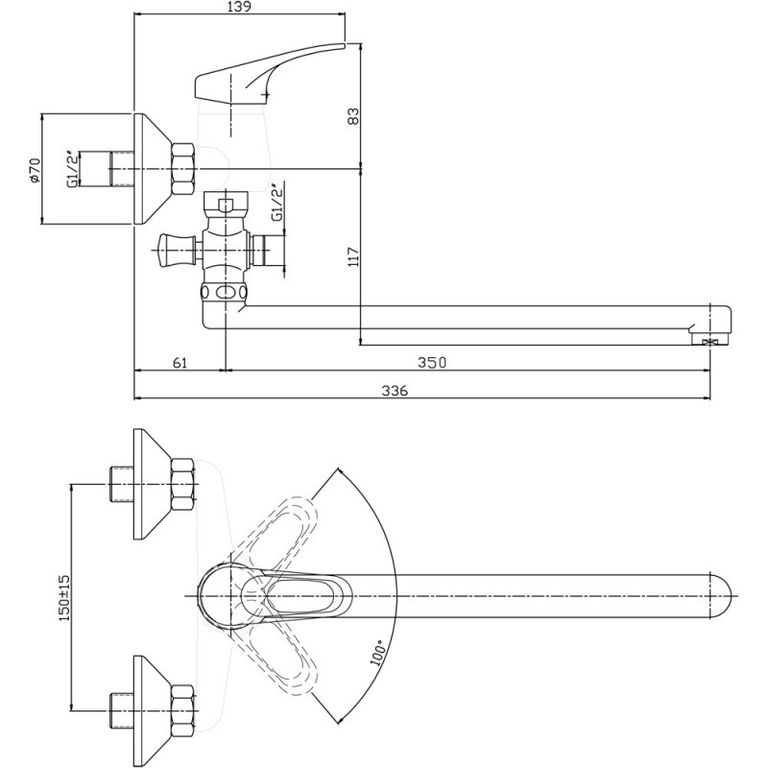 Поворотный излив- Длина излива: 350 мм-