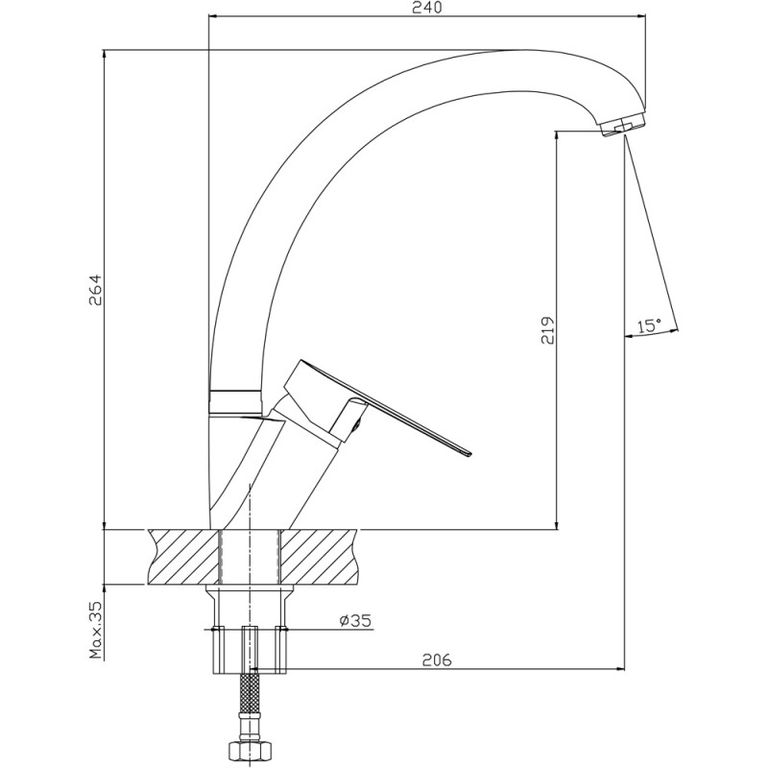 - Высота излива: 219 мм