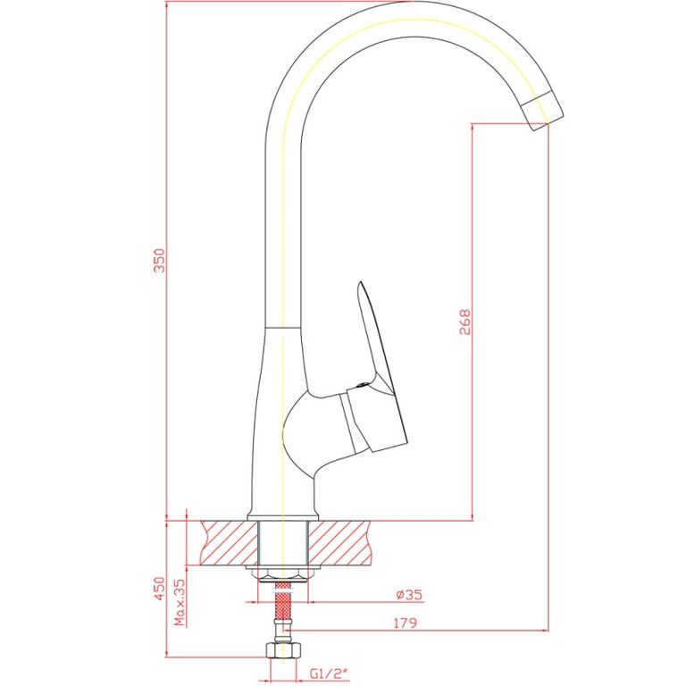 - Длина излива: 179 мм