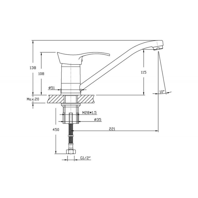 - Длина излива: 220 мм