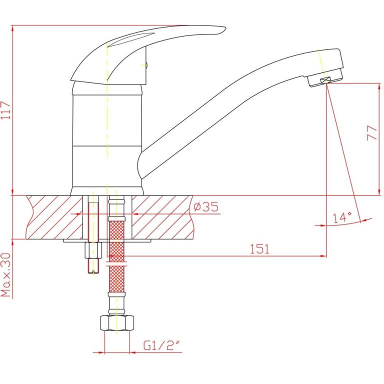 Высота излива: 77 мм-