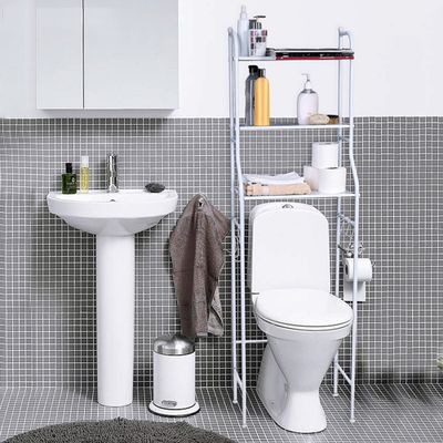 Отличный вариант хранения принадлежностей в туалете. Напольная полка устанавливается над бачком унитаза, что существенно экономит пространство. Крепления полки к стене (винты) входят в комплект. На полке можно расположить полотенца, освежители, различные бытовые принадлежности. Вместительная и в тоже время компактная 3-х ярусная полка непременно дополнит интерьер вашей ванной или туалета.