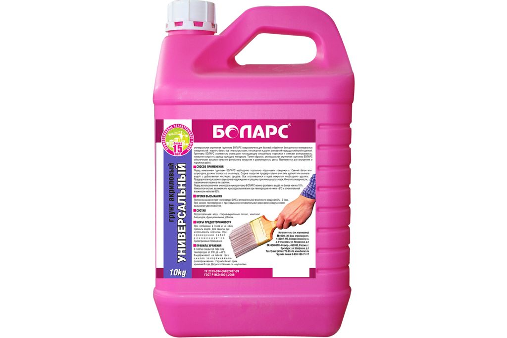 Грунтовка Боларс Укрепляющая применяется для обработки бетона, кирпича, цементных и гипсовых штукатурок и шпатлевок, ГКЛ, ГВЛ, ПГП. Применение Грунтовка снижает впитывающую способность основания, увеличивает сцепление материалов с основанием и сокращает расход отделочных материалов, обеспечивая их равномерное нанесение и полимеризацию. Используется для внутренних и наружных работ. Изготовлен на акриловой основе.